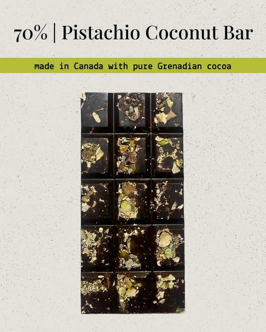 All of our bars are handcrafted dark chocolate made from Grenadian cocoa beans.